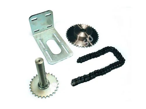 Передающая система для секционных ворот высотой более 5,5м. Система цепной передачи для секционных ворот (высотой более 5,5м) с валом и зубчатым колесом Z = 40 для полого вала, муфтой цепи 1/2” и анкер-болтами крепления к приводу.