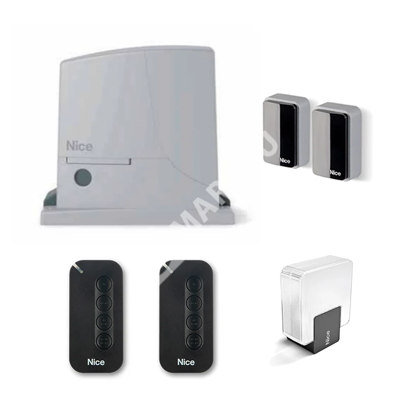 NICE ROX1000KCE — комплект автоматики для откатных ворот частного сектора с низкой интенсивностью, рассчитанный на створки массой до 1000 кг и проемом до 6 м. Основа набора — надежный электромеханический привод серии ROX с самоторможением и удобной механической разблокировкой металлическим ключом; стальная и бронзовая шестерни обеспечивают ресурс и стабильность в реальной эксплуатации. Для дополнительной безопасности поддерживаются функции автозакрытия и закрытия после срабатывания фотоэлементов.