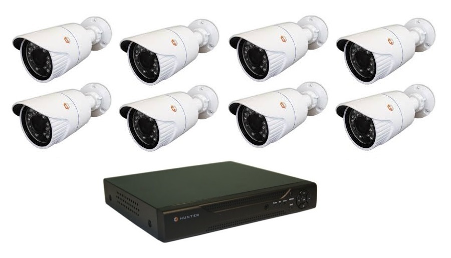Hunter IP KIT-8/71 - готовый комплект видеонаблюдения для наружней установки. Состоит из восьми видеокамер с разрешением 960р и сетевого восьмиканального видеорегистратора.