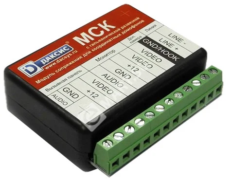 Даксис МСК - модуль сопряжения предназначен для подключения индивидуального видеодомофона к линии связи общеподъездного домофона с координатной системой адресации абонентов (Vizit, Cyfral, Eltis, Метаком), для приема вызовов от него и открывания подъездной двери с помощью стандартных функций видеодомофона. Помимо линии аудиодомофона с помощью модуля сопряжения можно подключить четырехпроводную вызывную видеопанель (для установки на этаж) и видеосигнал от подъездной видеокамеры.