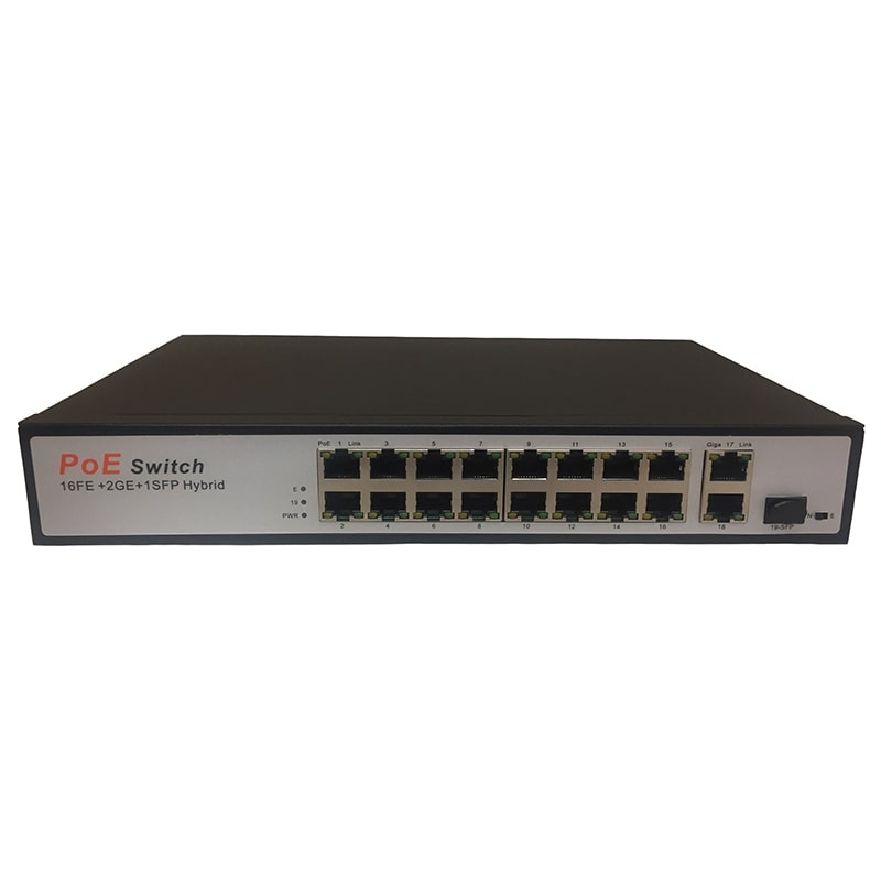 18-ти портовый, 16 PoE портов, 1 SFP порт