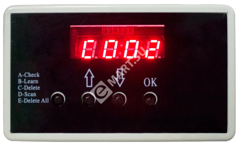 Предназначен для программирования любого количества приемников TSt-RCV4-250. Функции: просмотра, добавления, индивидуального удаления, проверки брелоков и полная очистка памяти приемника.