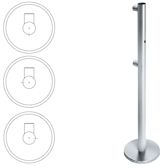 OXGARD ВЗР 2442.09.52 - Стойка ограждения односторонняя передвижная с отверстием под фиксатор, 2 муфты и отверсие слева. Труба d50мм Н=1000 мм. С основанием d300мм из нерж.стали.