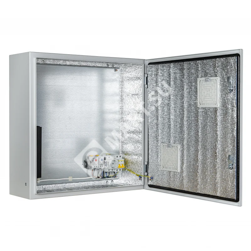 Климатический навесной шкаф Mastermann-4УТПВ-П+ (Ver. 2.0) IP 54 с вентиляторными решетками (пассивная вентиляция) и защитным реле от "холодного пуска". Предназначен для использования в любых климатических условиях на улице (-55°С +50°С)