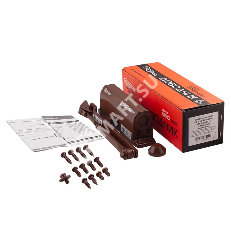 Скорость закрывания и дохлопа регулируется при помощи винтов. Подробная информация по установке и регулировки доводчика содержится в инструкции (есть в индивидуальной упаковке каждого изделия).