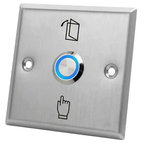 Кнопка выхода врезная металлическая (нерж. сталь). Светодиодная подсветка. Коммутируемый ток - 3А. Питание 12В DC. Контакты НО/НЗ. Габаритные размер: 86х86 мм