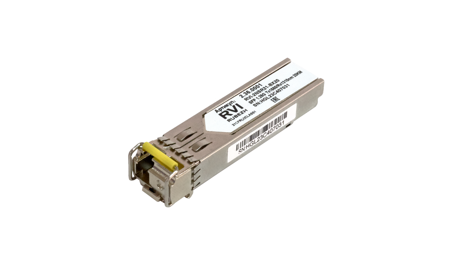 Форм-фактор: SFP; Скорость передачи данных: 1.25 Гбит/с; Дальность передачи данных: 20 км; Тип разъёма: Simplex LC (одноволоконный); Тип кабеля: Оптоволоконный кабель; Тип передатчика: Одномодовый (SMF, 9/125 мкм); Длина волны передачи (TX): 1550 нм; Длина волны приема (RX): 1310 нм; Чувствительность: -24 дБм; Оптический бюджет: 15 дБ; Двунаправленная связь (WDM): Поддерживается; Цифровой диагностический мониторинг (DDMI): Поддерживается; «Горячая» замена: Поддерживается; Совместимость: SFP MSA; Gigabit Ethernet (IEEE STD 802.3); 1x Fibre Channel ( FC-PI-2 Rev. 10.0); Напряжение электропитания: DC 3.3 В; Потребляемая мощность: 0,6 Вт; Потребляемый ток: 300 мА; Диапазон рабочих температур (мин.): -40 °С; Диапазон рабочих температур (макс.): 80 °С; Материал корпуса: Металл; Габаритные размеры: 57.51(Д)13.3(Ш)8.25(В) мм