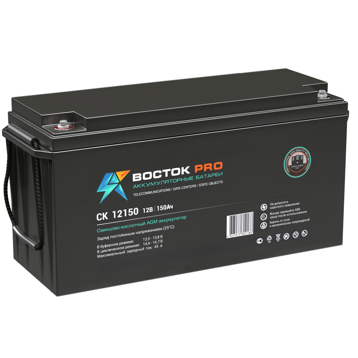 Свинцово-кислотные аккумуляторы ВОСТОК серии CK предназначены для использования в системах бесперебойного питания, резервного энергоснабжения, автономных энергосистемах. Изготовлены по AGM технологии (электролит, абсорбированный в стекловолоконном сепараторе), являются герметизированными и необслуживаемыми, со сроком службы в буферном режиме 10 лет (от 5 до 26 Ач – 5 лет). Обладают высокими разрядными и эксплуатационными характеристиками благодаря использованию в составе электролита и намазной пасты специальных добавок, препятствующих коррозии и замедляющих процесс старения.