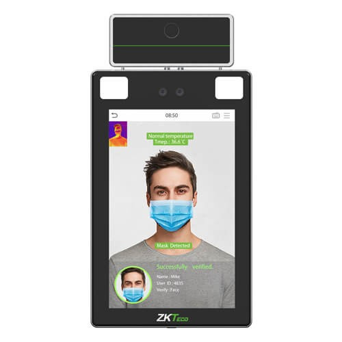 ZKTeco ProFaceX [TI] [ID] - Биометрический терминал распознавания лиц и измерением температуры. Считыватель EM. Детекция маски на лице. Идентификация по ладони. Память: лиц 30000, событий 1 млн. TCP/IP, RS232, RS485, Wiegand, IP68, IK04. -30...+60°C
