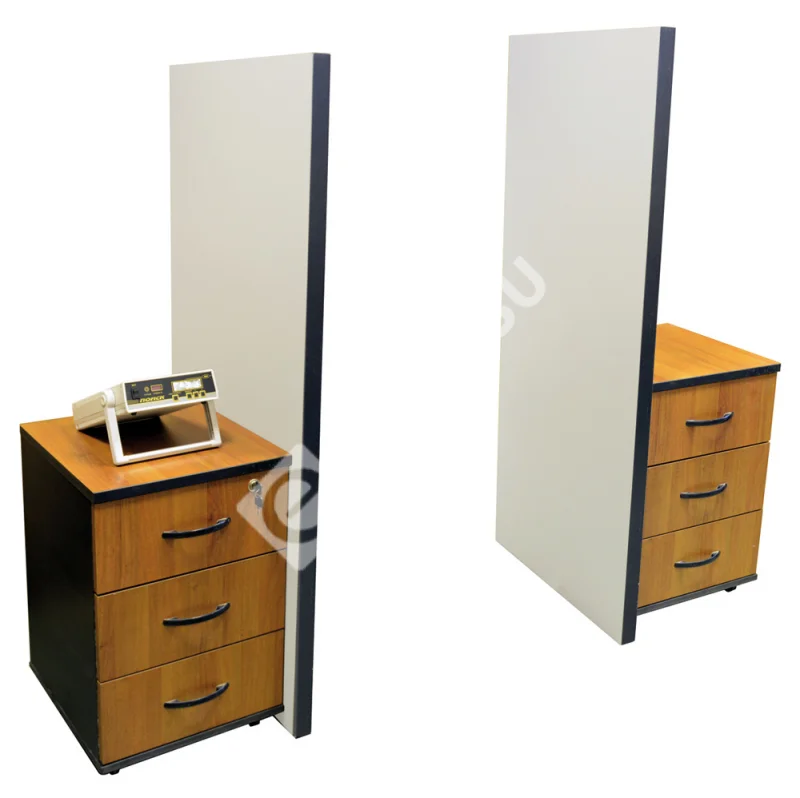 Стационарный металлодетектор Выполнен в виде двух панелей, образующих контролируемый проход, и электронного блока, подключаемого к ним с помощью кабелей. Отсутствие привычной арочной формы позволяет легко закамуфлировать изделие под детали внутреннего интерьера и осуществлять контроль, не привлекая лишнего внимания входящих.