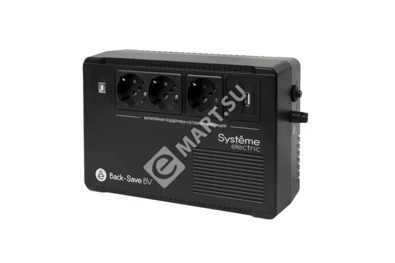 ИБП Systeme Electric Back-Save BV 800 ВА, автоматическая регулировка напряжения, 3 розетки Schuko, 230 В, 1 USB Type-A