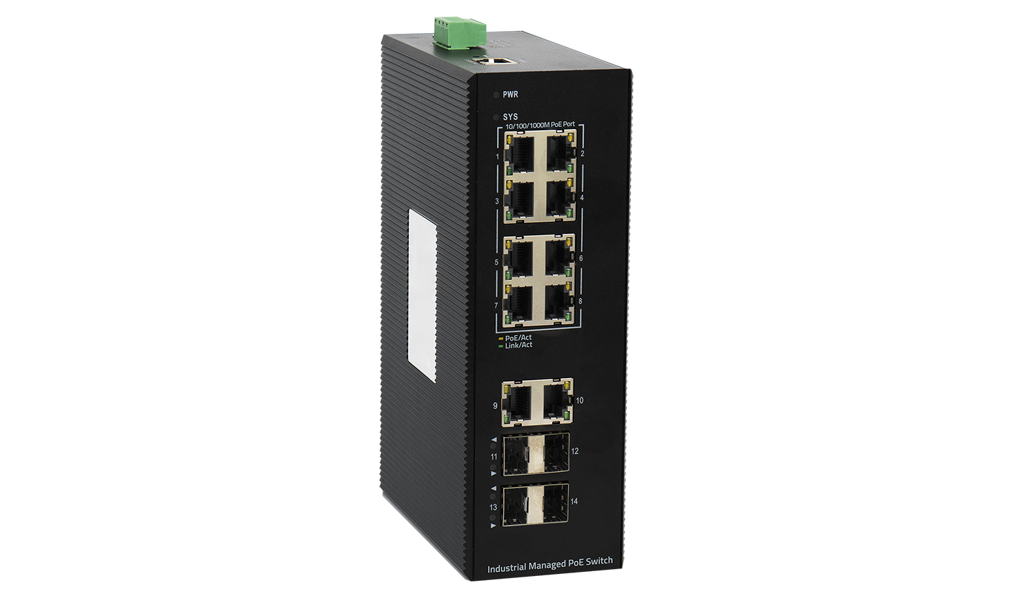 Функции управления: L2+; Количество портов доступа (downlink): 8 RJ45 портов 10/100/1000 Мбит/с c поддержкой PoE; Количество портов соединения (uplink): 4 RJ45 порта 10/100/1000 Мбит/с + 4 SFP порта 1000 Мбит/с; Тип портов соединения (uplink): Независимые; Консольный порт: RJ-45 порт; Стандарты и функции: IEEE 802.3 10Base-T Ethernet; IEEE 802.3u 100Base-T Fast Ethernet; IEEE 802.3ab 1000Base-T Gigabit Ethernet; IEEE 802.3z 1000Base-X Fiber Gigabit Ethernet; IEEE 802.3ae 10GBase-X; IEEE802.3x; Автосогласование скорости передачи и режима дуплекса; Дуплексный/полудуплекс режим для скорости 10/100 Мбит/с; Автоопределение MDI/MDIX на всех портах; Flow control; Индикаторы: Power; System; Fiber link; PoE (на каждый порт); Link/Activity (на каждый порт); Кнопка сброса настроек: Да; Метод коммутации: Store-and-forward; Стандарт PoE: 802.3af; 802.3at; Максимальная мощность PoE на портах: Все порты 802.3af/at до 30 Вт; Бюджет мощности PoE: 240 Вт; Электропитание: DC 48...55 В до 260 Вт ; Блок питания: До двух внешних (в комплект не входят); Система вентиляции: Пассивная система охлаждения; Грозозащита: до 6 кВ (IEC61000-4-5); Индустриальное исполнение: Да; Диапазон рабочих температур: -40°С...75°С; Класс защиты: IP40; Габаритные размеры: 64(Д)х64(Ш)х188(В) мм