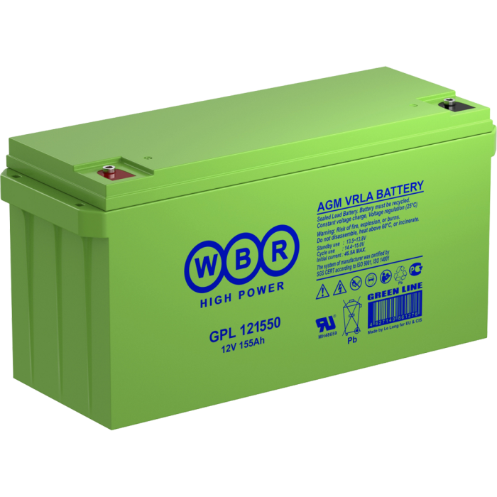 Аккумулятор WBR GPL121550 - герметизированная, выполненная по технологии AGM, аккумуляторная батареи общего применения со сроком службы до 12 лет в буферном режиме. Эта высокоэффективная, перезаряжаемая батареи, не требующая обслуживания в течение всего срока службы.