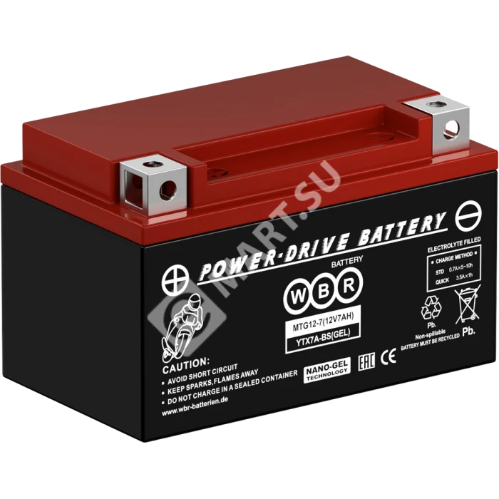 Герметизированные, выполненные по гелевой технологии (GEL), стартерные мотоциклетные свинцово-кислотные аккумуляторы WBR MTG12-7 обладают высоким качеством и надежностью. Эти аккумуляторные батареи успешно выдерживают конкуренцию со стартерными батареями этого класса других производителей, соответствуют техническим характеристикам и являются аналогом мотоциклетных аккумуляторных батарей YUASA серии YB14L-BS. Они предназначены для работы приборов и пусковых механизмов на мотоциклах, скутерах, гидроциклах, квадроциклах, снегоходах и мотовездеходах.