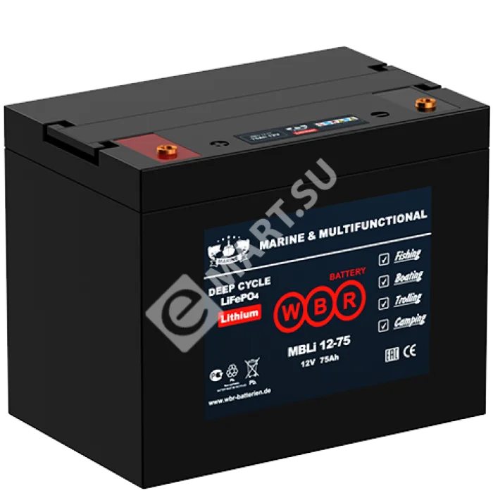 Аккумулятор WBR MBLi12-75 - литий-железо-фосфатные (LiFePO4), обладающие высоким качеством и надежностью, увеличенной в 10 раз цикличностью использования и уменьшенным на 60% весом по сравнению со свинцово-кислотными аккумуляторными батареями. Современная технология производства аккумуляторов с использованием химического взаимодействия углерода и феррофосфата на основе литий-ионных аккумуляторов исключает риск воспламенения или взрыва при сильном ударе, перезаряде или коротком замыкании.