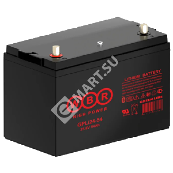 Аккумулятор WBR серии GPLi24-54 литий-железо-фосфатные (LiFePO4), обладающие высоким качеством и надежностью, увеличенной в 10 раз цикличностью использования и уменьшенным на 60% весом по сравнению со свинцово-кислотными аккумуляторными батареями. Современная технология производства аккумуляторов с использованием химического взаимодействия углерода и феррофосфата на основе литий-ионных аккумуляторов исключает риск воспламенения или взрыва при сильном ударе, перезаряде или коротком замыкании.