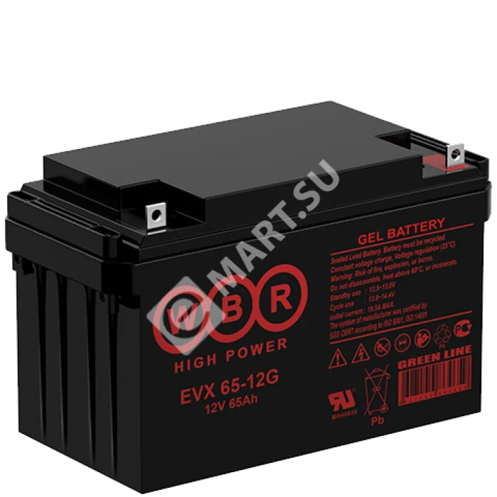 Аккумулятор WBR EVX65-12G- герметизированная, выполненная по гелевой (GEL) технологии, тяговая свинцово-кислотная аккумуляторная батарея. Обладает высоким качеством и надежностью, устойчива к глубоким разрядам и применяется для питания электрических транспортных средств, гольфкаров, газонокосилок, полотерных и поломоечных машин, медицинских колясок, электроинструмента, электронасосов, эхолотов, осветительных приборов, в том числе наружного освещения и другой техники.