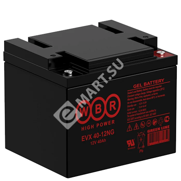 Аккумулятор WBR EVX40-12NG- герметизированная, выполненная по гелевой (GEL) технологии, тяговая свинцово-кислотная аккумуляторная батарея. Обладает высоким качеством и надежностью, устойчива к глубоким разрядам и применяется для питания электрических транспортных средств, гольфкаров, газонокосилок, полотерных и поломоечных машин, медицинских колясок, электроинструмента, электронасосов, эхолотов, осветительных приборов, в том числе наружного освещения и другой техники.