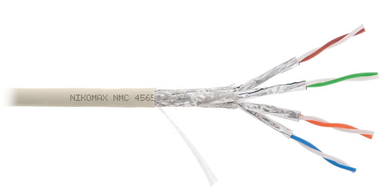 Кабель NIKOMAX S/FTP 4 пары, Кат.7 (Класс F), тест по ISO/IEC, 600МГц, одножильный, BC (чистая медь), 23AWG (0,56мм), полимерный материал нг(А)-LSLTx, внутренний, светло-серый, 500м - гарантия: 5 лет /15 лет системная
