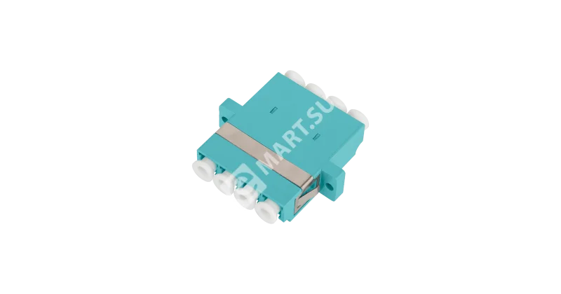 Адаптер NIKOMAX волоконно-оптический, соединительный, многомодовый, стандарта OM3, LC/UPC-LC/UPC, квадро, пластиковый, без шторки, с фланцами, аква, уп-ка 2шт.