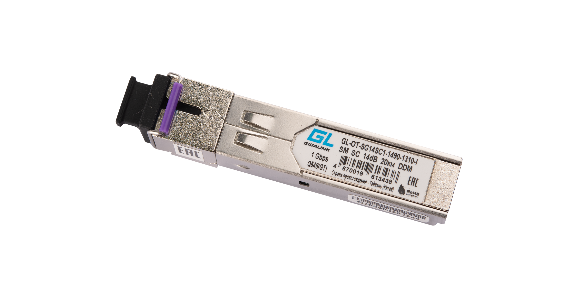 Модуль NIKOMAX SFP, 1.25 Гбит/с, WDM, 1 ОВ, SM, 1xSC, Tx:1490/Rx:1310 нм, DDM, 14 дБ (до 20 км), -40 +85 °С