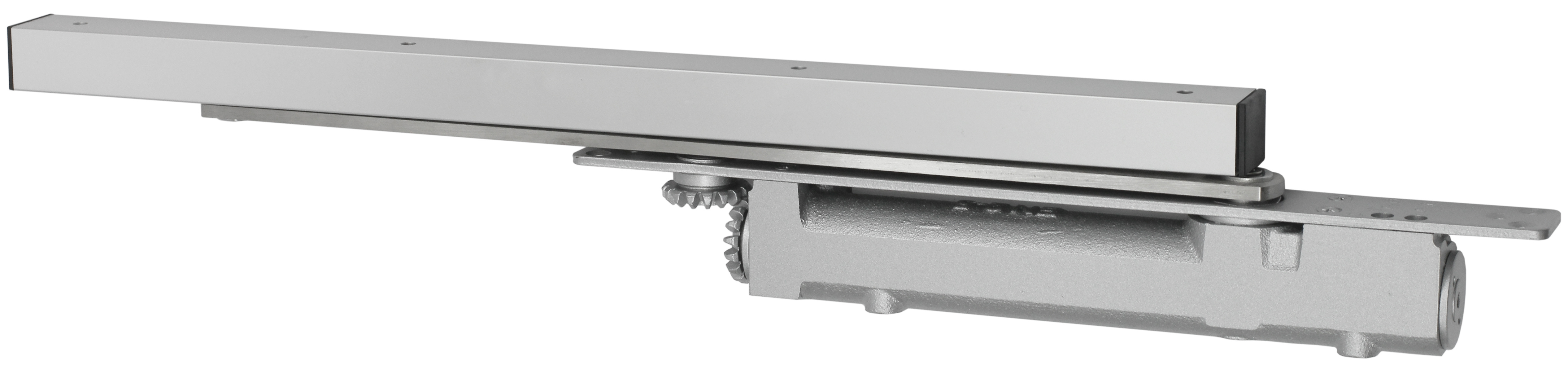 Доводчик двери врезной cо скользящей тягой EN 2-4, 30 - 85 кг, 1100 мм, 2-х скор., HO - удержание в открытом положении, SL - алюм