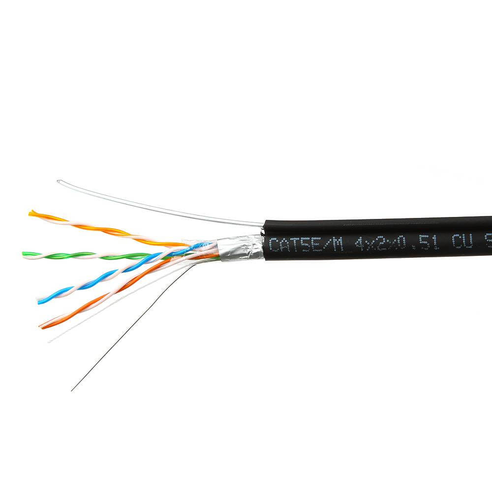 Кабель Skynet Premium FTP4 cat.5е, одножильный, 305м, Cu, Проходит Fluke тест, для наружных работ, с тросом, черный