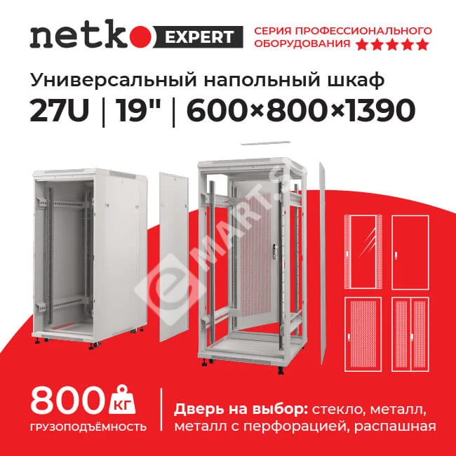 –Netko Шкаф напольный 27U серия Expert (600х800х1390), напольный, БЕЗ ПЕРЕДНЕЙ ДВЕРИ, серый