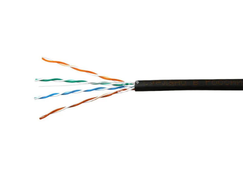 Кабель витая пара UTP 4 применяется в системах СКС при внешней прокладке. Предназначены для использования в высокоскоростных системах передачи данных со скоростью до 1Гбит/с. Кабель соответствует стандартам ANSI\TIA\EIA-568-B.2 Проходит Fluke тест на 100м Огнестойкость: UL VW-1, IEC-332.1 Арамидная нить позволяет легко удалять оболочку кабеля на необходимую длину. Технические характеристики: Проводник, d: медь (Cu), 24 AWG, одножильный Внешний d кабеля: 5,8 мм± 0,2мм Тип и цвет оболочки кабеля: PE черный Применение: для наружных работ Бухта: 305 м Проходит Fluke тест на 100 метрах Относительная скорость распространения сигнала (NVP): 72% Диапазон частот: 1-100 МГц Волновое сопротивление, Ом: 100 + -15 Дисбаланс сопротивления 5% Диапазон температур °С: Хранение: от -40 до +60 Прокладка: от 0 до +60 (при этом до начала прокладки кабель должен находиться в помещении с плюсовой