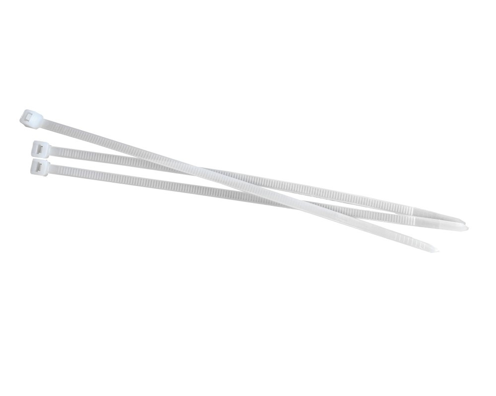 Допускается отклонение в размерах в пределах +/-3% Длина: 200мм Ширина: 4,6мм Прочность на разрыв (кг): 22 Упаковка: 100 шт. Цвет: белый Диапазон температур: эксплуатация от -35С до +85 С хранение от 0С до +40 С, при влажности от 50 до 70% (перед началом монтажа стяжки должны находиться в таких же условиях не менее 24 часов) Стяжки должны храниться вдали от обогревательных и отопительных приборов. рекомендуемая температура монтажа от +5С до +50 С Диаметр обхвата проводов и кабелей: от 3 до 50 мм Материал: нейлон 66 Замковый механизм одностороннего хода. Неразъемный