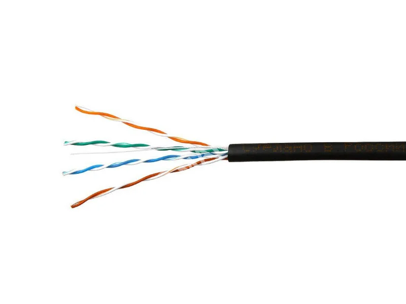 Кабель витая пара UTP 4 применяется в системах СКС для наружных работ. Предназначены для использования в высокоскоростных системах передачи данных со скоростью до 1Гбит/с. Кабель соответствует стандартам ANSI\TIA\EIA-568-B.2 Проходит Fluke тест на 100м Огнестойкость: UL VW-1, IEC-332.1 Арамидная нить позволяет легко удалять оболочку кабеля на необходимую длину. Технические характеристики: Проводник, d: медь (Cu), 24 AWG, одножильный Внешний d кабеля:5,6 мм± 0,2мм Тип и цвет оболочки кабеля: PE черный Применение: для наружных работ Бухта: 305 м Проходит Fluke тест на 100 метрах Относительная скорость распространения сигнала (NVP): 72% Диапазон частот: 1-100 МГц Волновое сопротивление, Ом: 100 + -15 Дисбаланс сопротивления 5% Диапазон температур °С: Хранение: от -40 до +60 Прокладка: от 0 до +60 (при этом до начала прокладки кабель должен находиться в помещении с плюсовой те