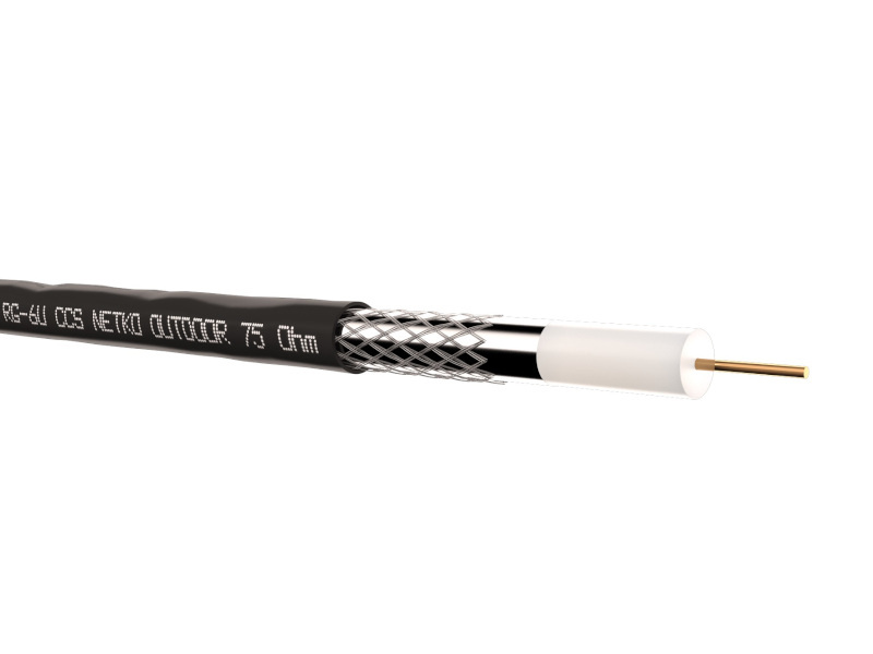 Кабель коаксиальный RG-6U, 75 Ом (CCS, оплетка 32 нити AL), наружный, черный (100м) NETKO Optima