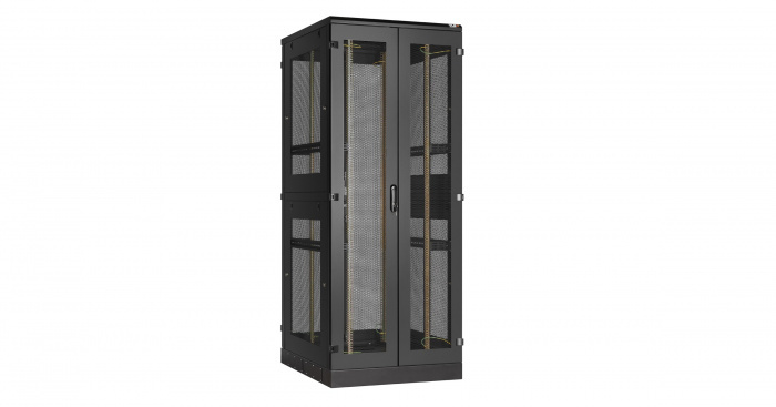 Напольный шкаф 19", 42U, перфорированные двухстворчатые двери, перфорированные двухуровневые стенки, Ш800хВ2060хГ1000мм, в разобранном виде, черный.Шкафы TFA имеют каркасы на цельносварных рамах, соединяющих между собой крышу и основание. Такая конструкция обеспечивает этим шкафам повышенную надежность и высокую грузоподъемность. Что в сочетании с глубиной 1000 мм дает возможность размещать внутри самое тяжелое и габаритное активное оборудование.