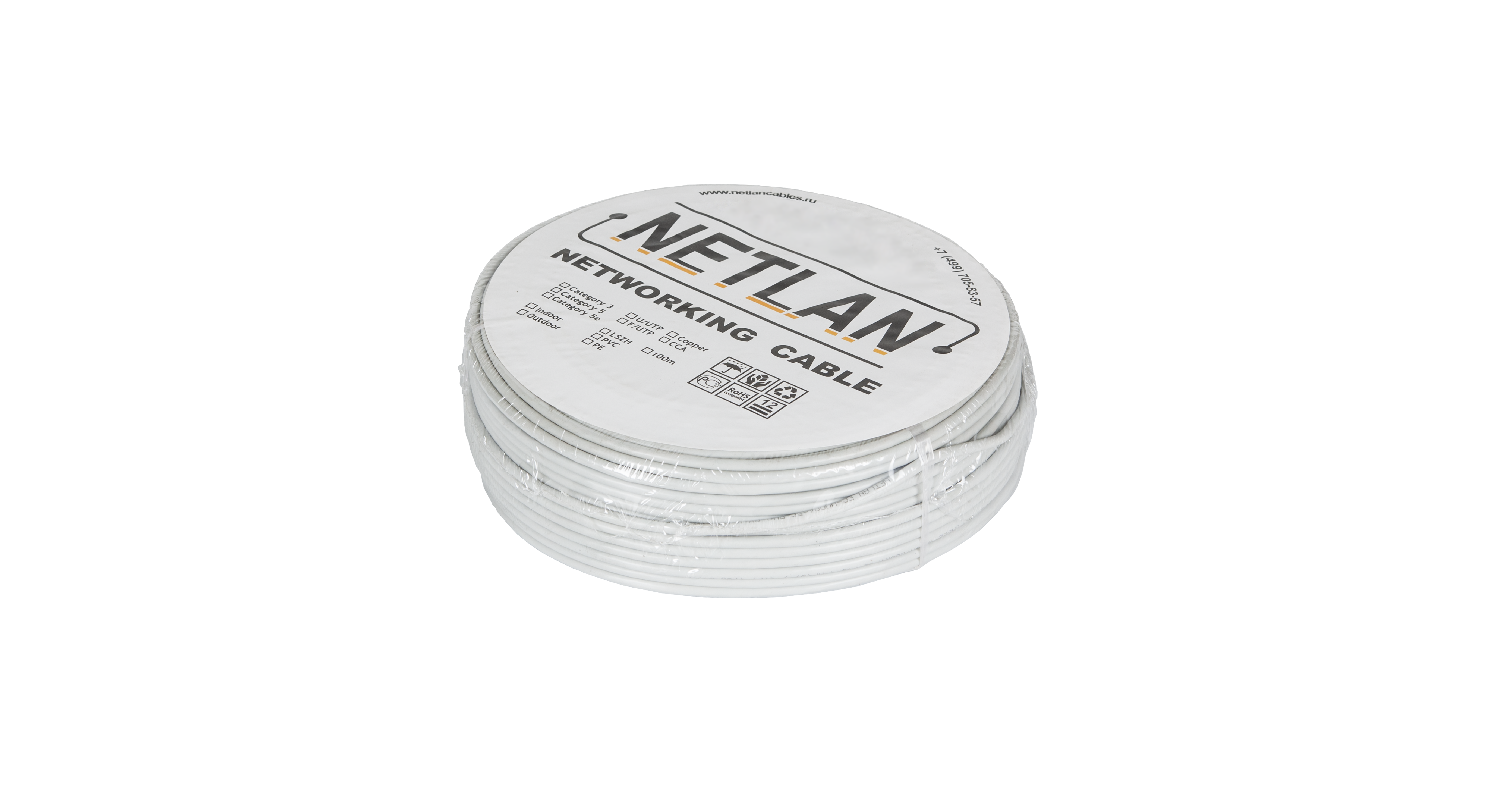 Кабель NETLAN U/UTP 2 пары, Кат.5 (Класс D), 100МГц, одножильный, BC (чистая медь), внутренний, PVC нг(B), серый, 305м