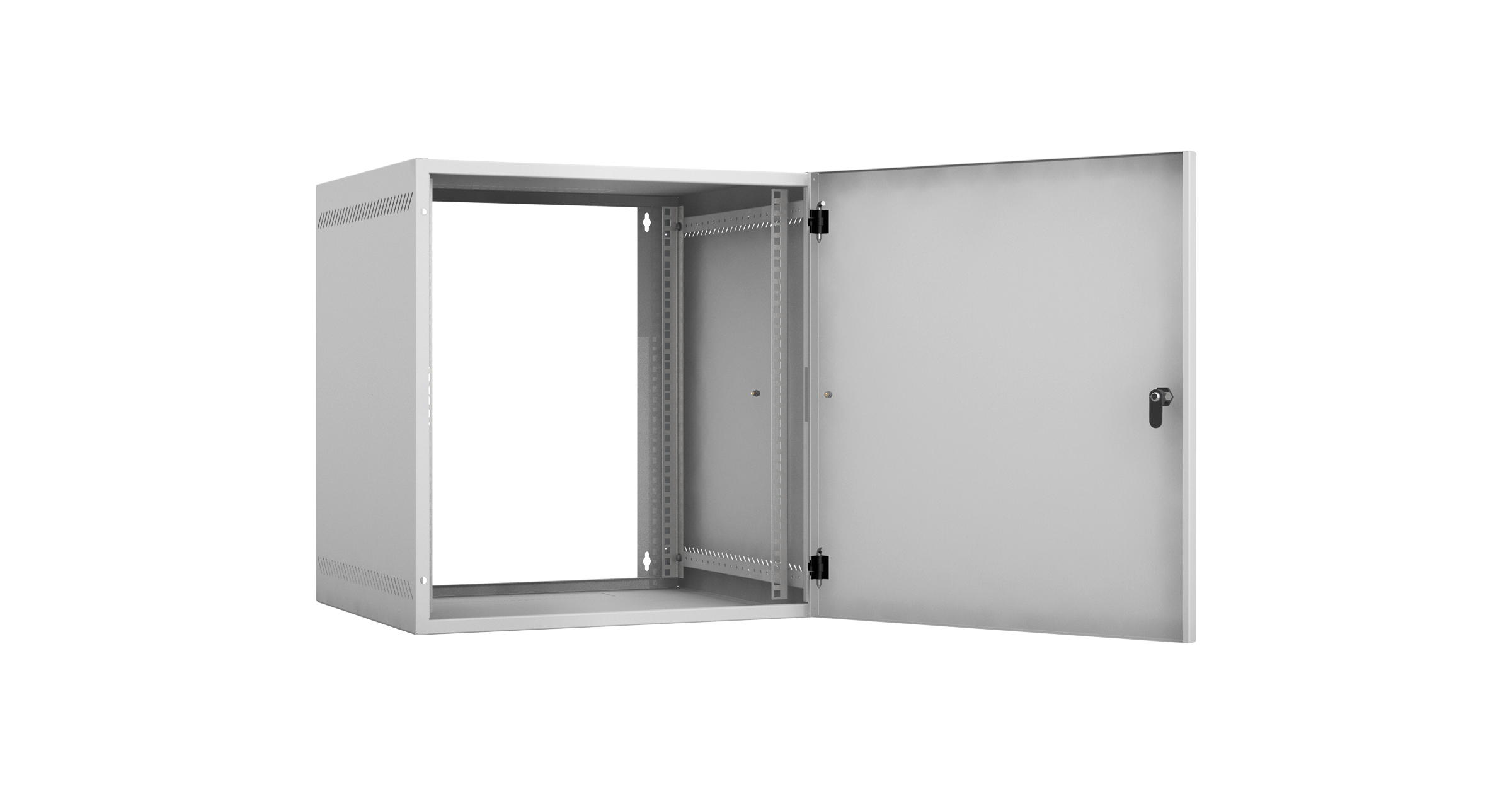 Настенный шкаф 19", 12U, металлическаяя дверь, Ш540хВ573хГ500мм, 2 пары монтажных направляющих, сварной, серый